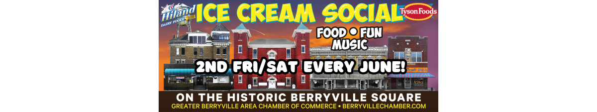 Join us for the BIG 40th Annual Berryville Ice Cream Social on the historic Downtown Berryville Square! Friday, June 12th and Saturday, June 13th, 2026.