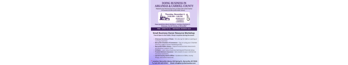 Call: 870-423-3704 | ✉️ Email: info@berryvillechamber.com  Date and TimeThursday Nov 6, 2025