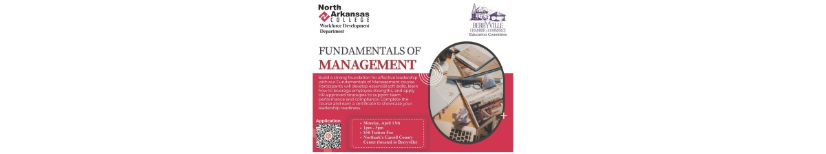 The Berryville Chamber of Commerce Education Committee is partnering with North Arkansas College Workforce Development to offer a Fundamentals of Management course designed to help current and future leaders strengthen their management skills.